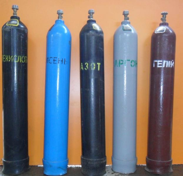 кислород,углекислота,аргон ,азот,гелий,пропан,метан.
