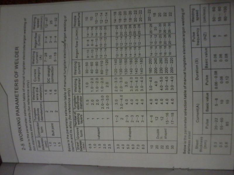 Появилась необходимость сварки алюминия и нержавейки, факт - был приобретён данный аппарат. По убеждениям продавца он прост в управлении имеет сохраненные программы для сварки, вызывая которые можно варить нерж алюминий ну и прочие металлы. На деле сохраненных программ было две, не применимых для моих целей, без описаний в инструкции, которая к тому же на англ языке. Но не в этом проблема. Изучив инструкцию, мне она показалась слишком сокращенной и не раскрывающей всех функций кнопок, как например это показанно на видео о сварном Mitech, в инструкции это было бы на одну страницу. Вся проблема сложилась при сварке алюминия на переменном токе в импульсном режиме - Вольфрамовый электрод быстро горел шов получался, горел меньше шов не получался. На постоянке при сварке нержи пришлось перейти на прямую полярность ( "-" на горелке) в отличии от рисунка в инструкции. В активе: аргоновый баллон (купленный на станции) с аргоном ВС, чешский редуктор GSE фото см. ниже. Два вольфрамовых электрода 2мм красный и синий, прилагались в комплекте, (пробывал обоими с тупой, закругленной заточкой на разных диаметрах керамического сопла 6,7,8). Чешский Рукав 9мм обжат по два хомута на стыках. Настройки пробовал одним словом - "Разные". Подачу аргона увеличивал от 8 л до 18. Прошу помочь с настройками см. рис.: