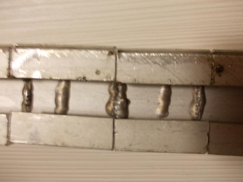 В средний шов случайно бузонул присадочного прутка перепалил и все пошло не так. Вольфрам E3 2,4 мм; присадочный пруток UNION ALMG 2,4 мм, режим АС импульс 2Т. Электрод затачивал с закруглением, добавлял плюса - получал шарик, потом варил по настройкам.