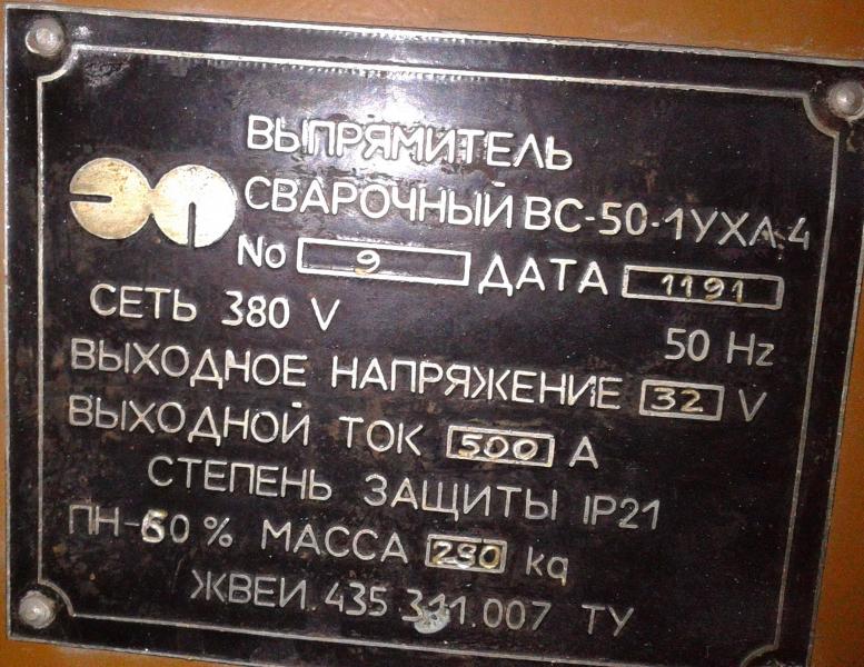Есть в наличии выпрямитель сварочный ВС-50-1УХЛ4 выпущен в 1991 году ,ищу любую информацию по аппарату, фото прилагаю