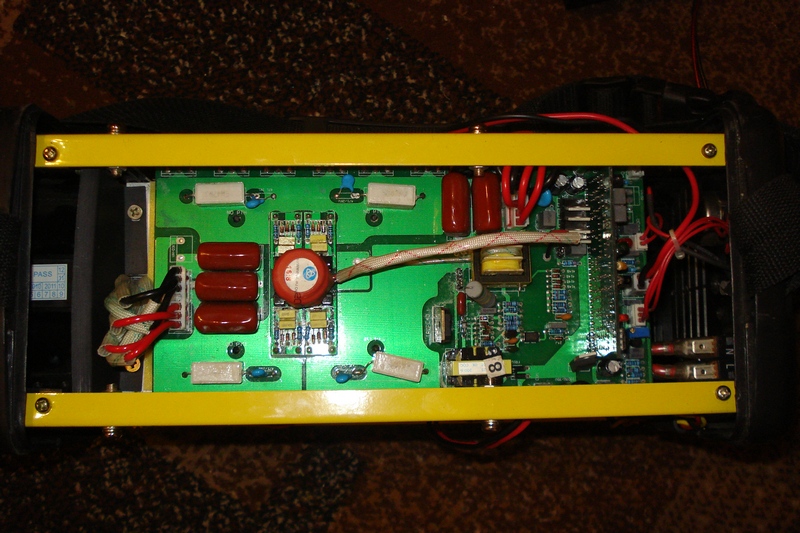 Ребята попросили глянуть. Внутренности один в один и симптомы точно такие же. Включается, загорается зелёный светодиод на плате сверху. Напряжение ХХ 65-70в. При касании к массе небольшая искра и загорается красный светодиод на передней панели. Возобновление попытки после отключения и выжидания паузы. В общем как у ТС. Визуально на платах повреждений не наблюдается, . Ни гарантий ни доков нет-это был подарок ребятам участка за победу в проф соревнованиях на производстве. Поработали буквально пару тройку дней и он в таком состоянии. Пытался найти схему в профильных форумах, что то не могу найти.
