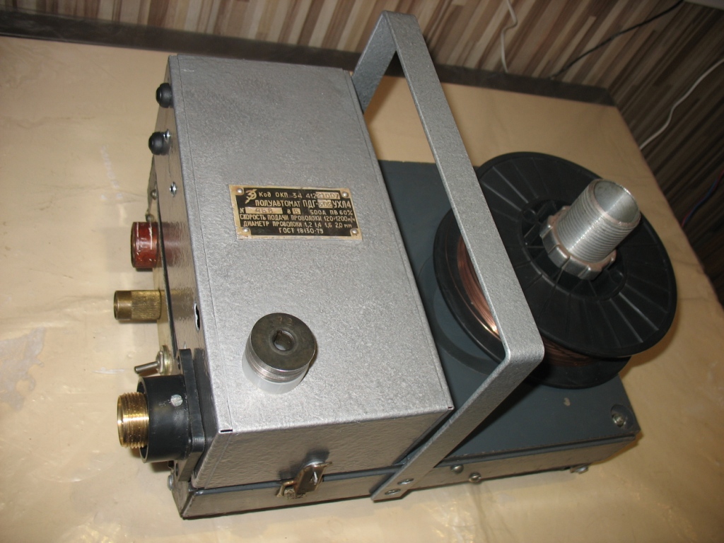 Силовой кабель (КГ-16, 3 метра) и кабель управления 5 метров. Ролик под проволоку 0,8 1,0 1,2 мм. Прижимной ролик то же ведущий. Конструкция значительно надежней и удобнее чем в современных протяжках. Катушкодержатель - алюминиевый, с регулируемой силой прижима, перемещается по раме исходя из размеров устанавливаемой катушки (5-15 кг катушки).