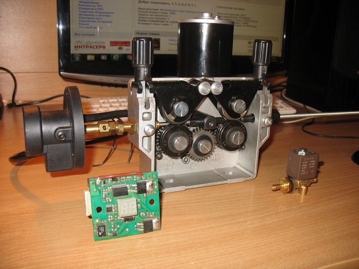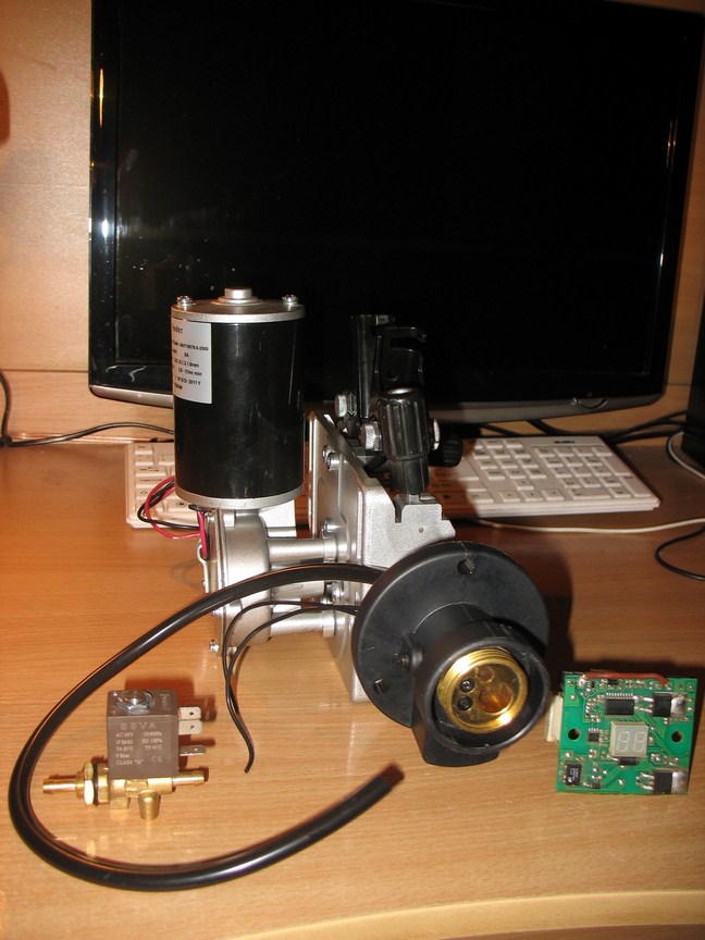 Комплект для полуавтомата - протяжка, клапан, евроразъем, плата управления подающим механизмом.