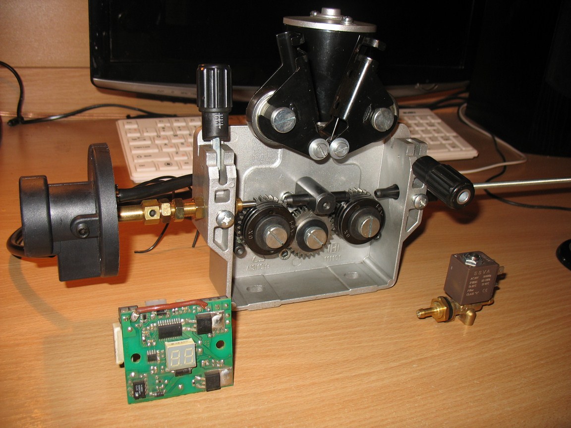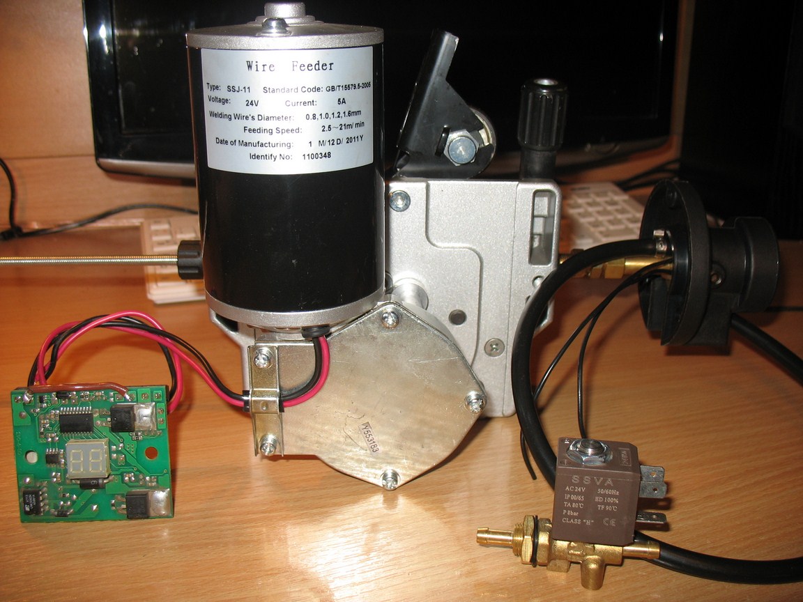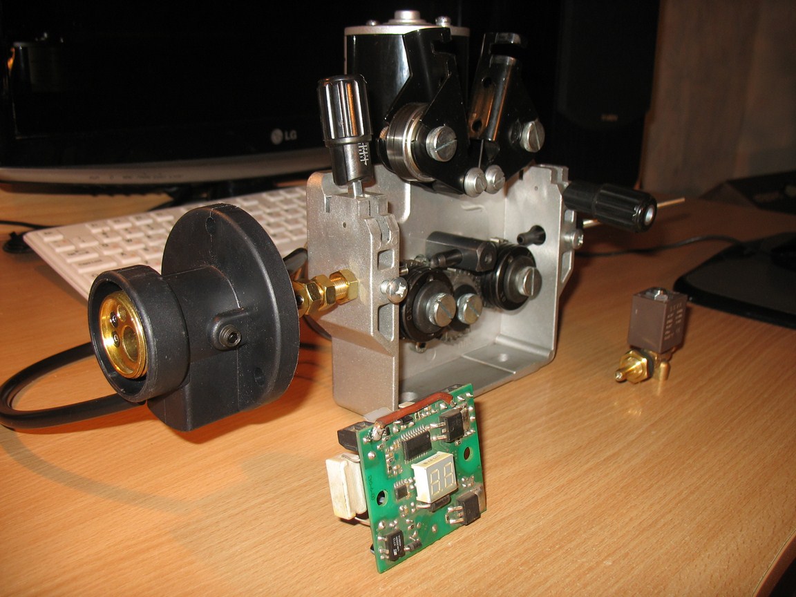 Покупалось для восстановления мощного финского 3-х фазного промышленного полуавтомата KEMPPI, но когда все это было уже куплено подвернулся за недорого родной подающий механизм, а эти комплектующие теперь распродаются ниже закупочной стоимости. Можно разукомплектовать. В целом рыночная стоимость всего комплекта составила 5400 грн (мотрредуктор, клапан, плата, евроразъем, провода соединяющие, разъемы, кнопки на плату, реле на включение силового источника тока, расходы по доставке Нововой Почты, бензин + время и работа).