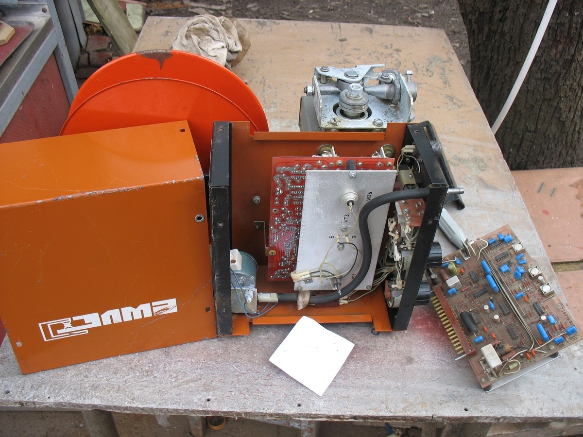 Для выпрямителей типа ВДГ-303-2, ВДГ-303-3 и т.п. Новая, с длительного гаражного хранения. Состояние на фото, реально не пользовались, можно заметить по приемной втулке и прижимном ролике - выработки и следов работы нет. В комплект дам запасной двигатель (б\у), клапан газа на 48В (новый), и плату управления - на фото есть (б\у) + всю внутреннюю проводку запасную. Схема подключения и ответные разъемы прилагаются. Где-то еще ролик под 1,0 мм должен был быть, поищу. Обеспечу помощь в подключении. Можно подключить к любому полуавтомату, только необходим будет блок питания.