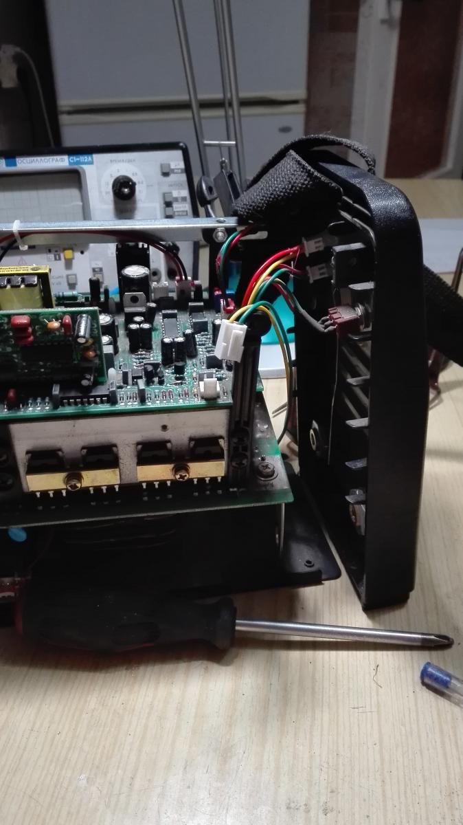 Силовая часть работает.Импульсы на транзисторах,на ШИМке появляются,всё замечательно,как только подсоединяешь разъём,то через доли сек.уходит в защиту.