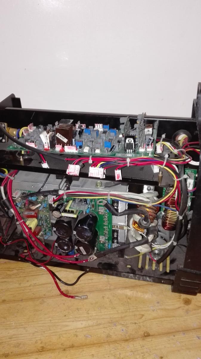 выходе 15В ,заменил оптрон и кондёр,БП запустился,питание в норме.Греются мосфеты в блоке управления,один сгоревший заменил,второй звонится целый,постоянно включен двигатель подачи