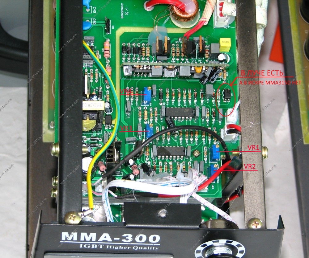 5) в плате отсувствует оптрон и резистор(грешу на то что этот оптрон отвечает за анти залипание)в тяжелейших изысканий схемы в нете, ни чего не нашёл,но удалось выяснить что Искра MMA 315D является аналогом инвертора Луч ПРОФИ 300i с и ShyUan (Шуян) 300i, ALFA MMA250,