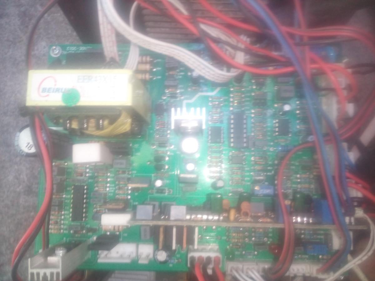 Причина была в переключателе режимов сварки.Мастер который делал до меня попутал провода на кнопке выбора режимов.Поменял микросхему CA3140EZ перекинул провода,апарат заработал.Тему закрываю.Всем спасибо.