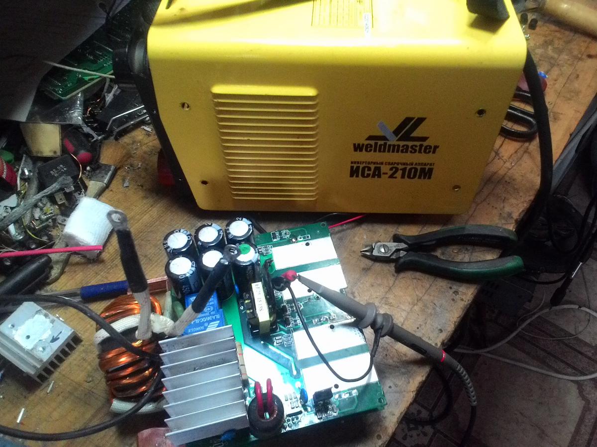 Спасибо,очень похожа схема!!! По поводу картинки, осцилограмма именно на входе транса,при этом был сгоревший один транзистор,купил 4 новых, поменял, включил,холостой ход нормально,при касании электродом изделия жахнули два транзистора и блок питания,блок восстановил а транзисторы страшно втыкать.Вложение 7553