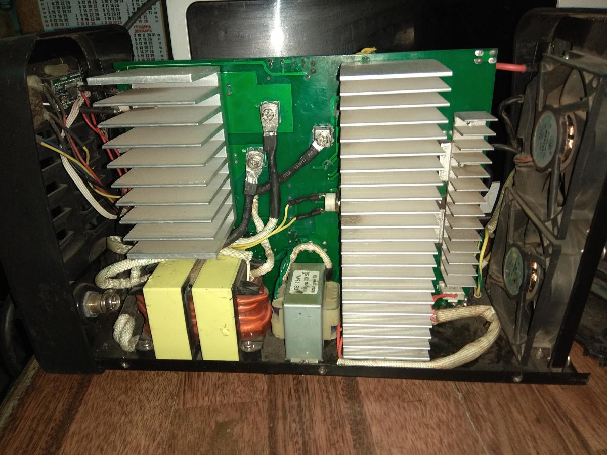 Вы написали - "Постоянные напряжения проседают не значительно." И следом пишите -"На силовых конденсаторах 10-15 вольт,на питании блока управления 1-2 вольта." И как это понять? Потом - "Сигнал на выходе управления нормальный пока не варишь,При сварке пропадает совсем." Не совсем понятно на чём собрана дежурка? Вроде бы на обычном трансформаторе. Если на силовых конденсаторах при попытке сварки сильно падает напряжение значит или конденсаторы высохли или скорее всего не включается силовое реле или его контакты выгорели. Вы же написали -"Сигнал на выходе управления нормальный пока не варишь,При сварке пропадает совсем." - пропадает сигнал потому что питание пропадает. Проверить электролиты и силовое реле в первую очередь.