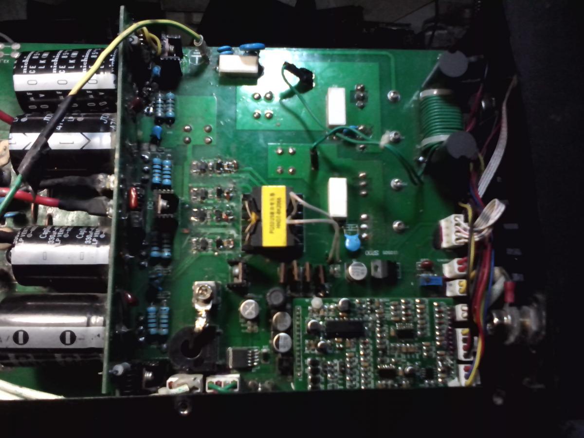 Вложение 7837 Плата управления(LM324.LM339.UC3846).Микр схемы поменял.Дефект в следующем-очень слабый ток.Регулировка на искру не влияет,но при максимуме регулятора слышно подтормаживание кулера.Постоянные напряжения проседают не значительно.На силовых конденсаторах 10-15 вольт,на питании блока управления 1-2 вольта.Сигнал на выходе управления нормальный пока не варишь,При сварке пропадает совсем.Вот и рою блок упр, без схемы.