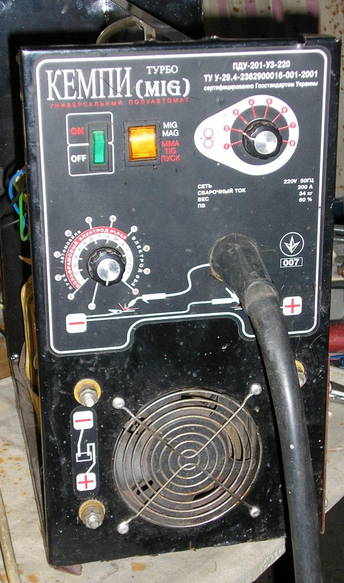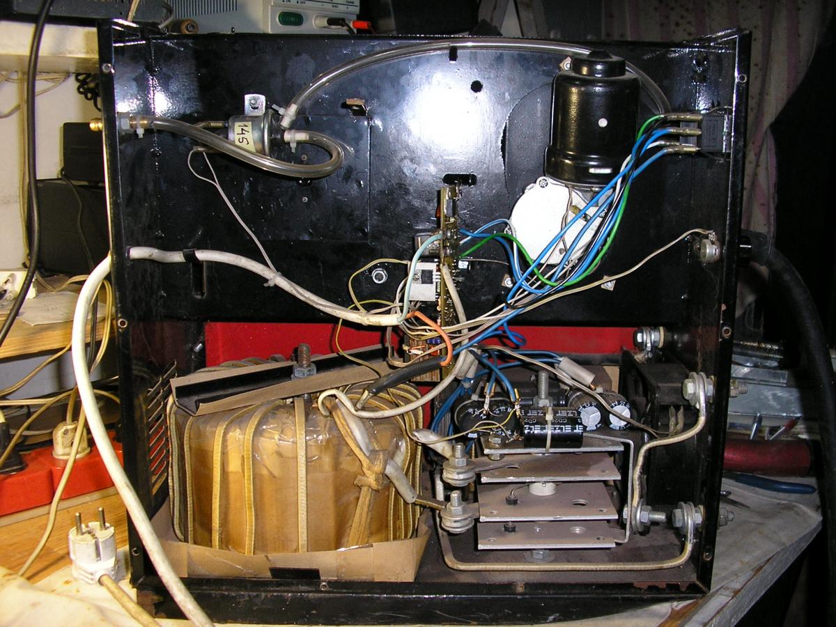 Фото аппарата. Неисправность - нет протяжки - нет газа и вообще неработает. Ну кто то уже ковырялся - так как переключатель режимов (оранжевый) при переключении в режим MIG розрывает цепь, идущую на кнопку которая на горелке. Так какая же будет сварка. Из особенностей выделил бы то что ток или напряжение на выходе ( затрудняюсь правильно назвать что регулируется) регулируется фазовым регулятором по первичной обмотке трансформатора. Дроссель есть - он с другой стороны за блоком диодов видно "жирный". Окромя попутаных проводов - реальная неисправность была в сильном окислении контактов в разъёме который впаян в плату - под пайкой не видно а когда нагреваешь пайку то припой отходит от контакта а он просто чёрный. Залудил контакты разъёма - впаял и всё работает. Эти разъёмы использовались в телевизорах совдеповских сколько я их выпаивал и лудил отдельно. Вложение 7925Вложение 7924Вложение 7926Вложение 7927Вложение 7928Вложение 7929Вложение 7930Вложение 7931Вложение 7932Вложение 7933Вложение 7934Вложение 7935Вложение 7936Вложение 7937