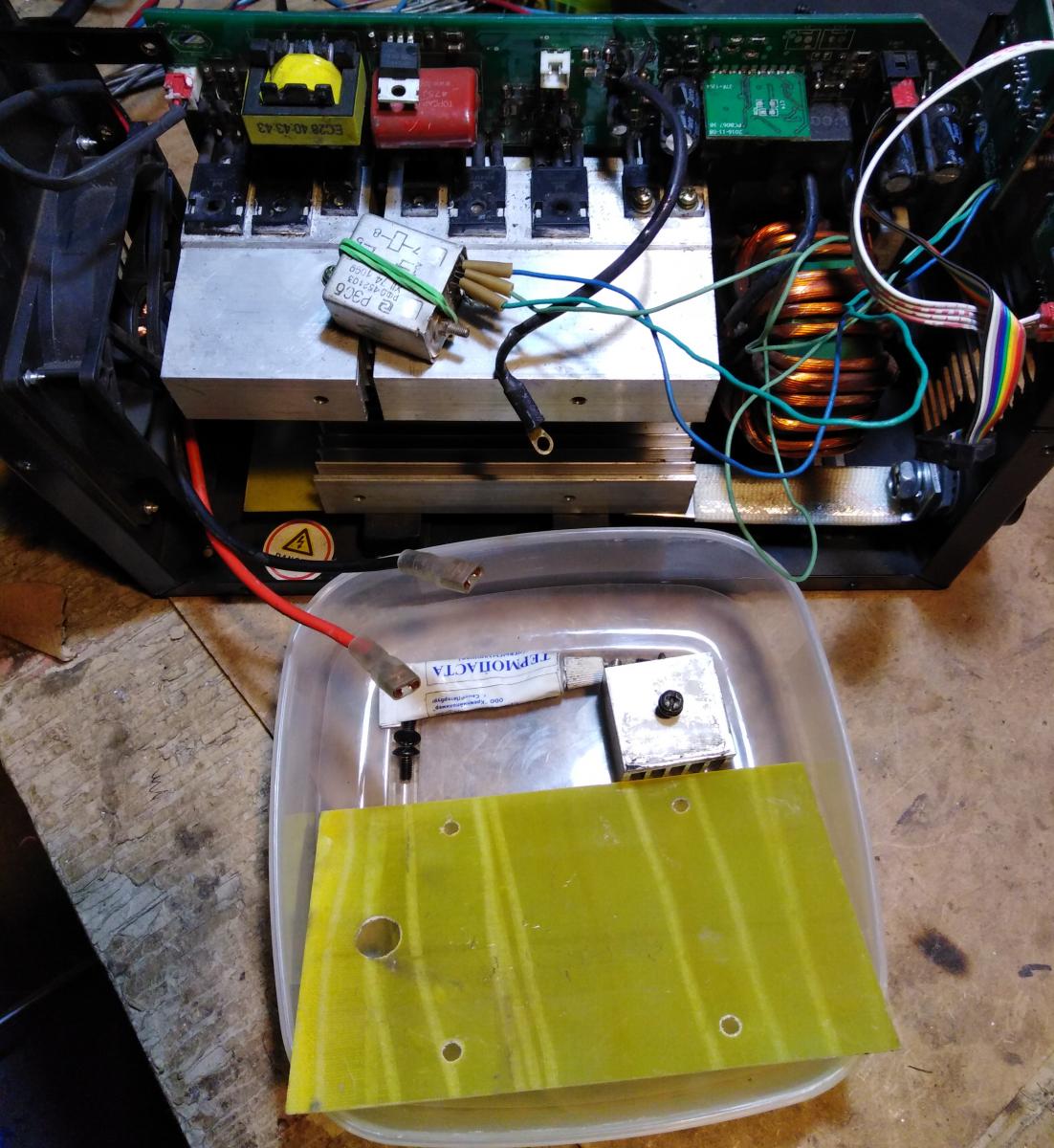 скальпелем срезал и увидел - UC2844 - спрашивается - зачем заливать. Запаял разъёмчик - теперь этот модуль съёмный. Кстати аппаратик без дросселя. В общем варит. Срисовал драйвер -