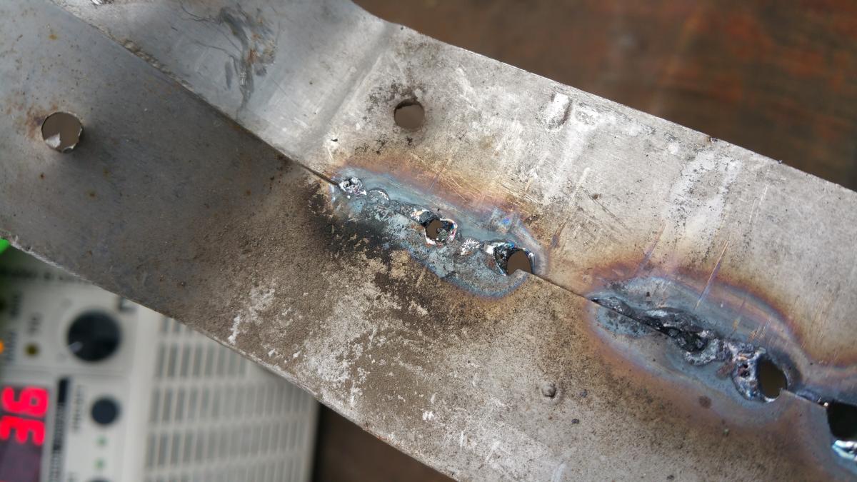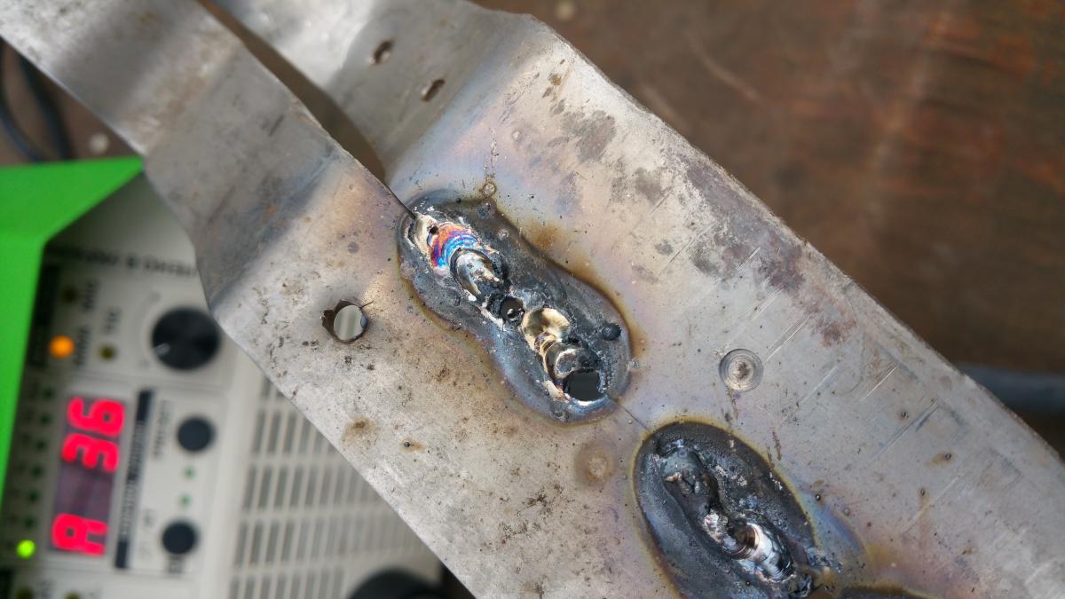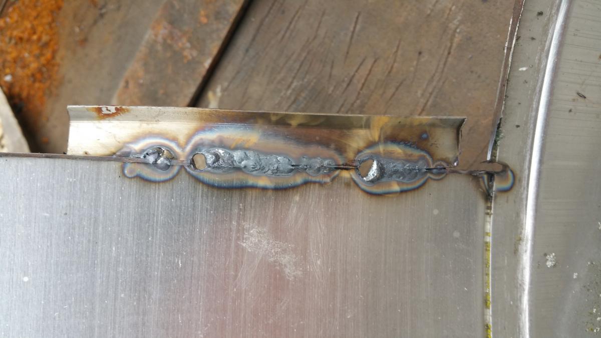 бак старой стиралки с двух сторон, 1мм нерж. - пробовал рутилом ø3мм