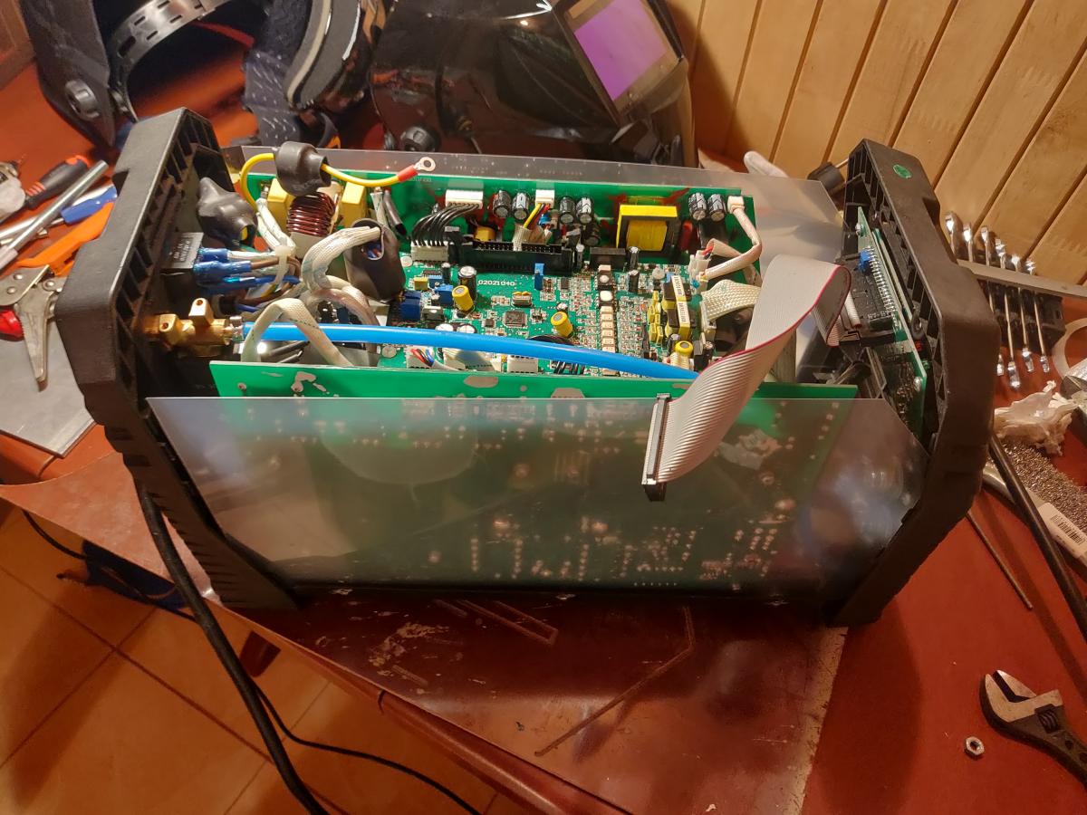 Вот и отследите визуально прохождение сигнала по проводам на плату потом на транзисторный ключ - потом на проц. или на оптопару и на проц. - в общем от клапана до проца. Параметры то есть цикл сварки вы программируете и заносите в проц. - так что думаю не так всё просто.