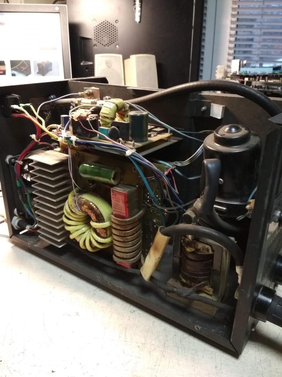 Принесли сие чудо. На вид какой то опытный образец. Хозяин сварщик не первый день, купил его бу и он сразу ему не понравился. Электродом варит на ура. С полуавтоматом какая то жопа. То не зажигает, до дырки плавит. Работать хотели по кузовщине.