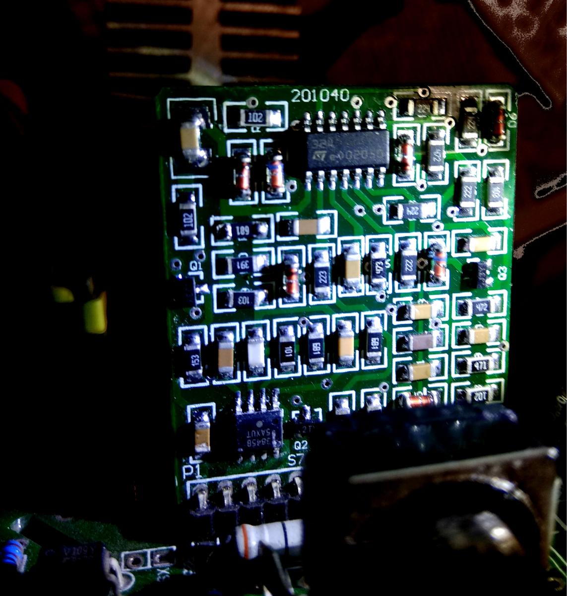 на плате управления 14-ногая микросхема 324 e02050 фирма ST, 8-пиновый контроллер 3845В.