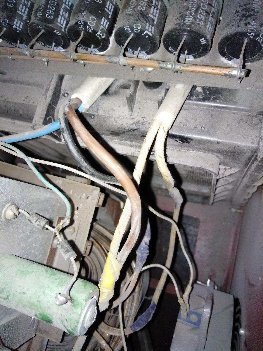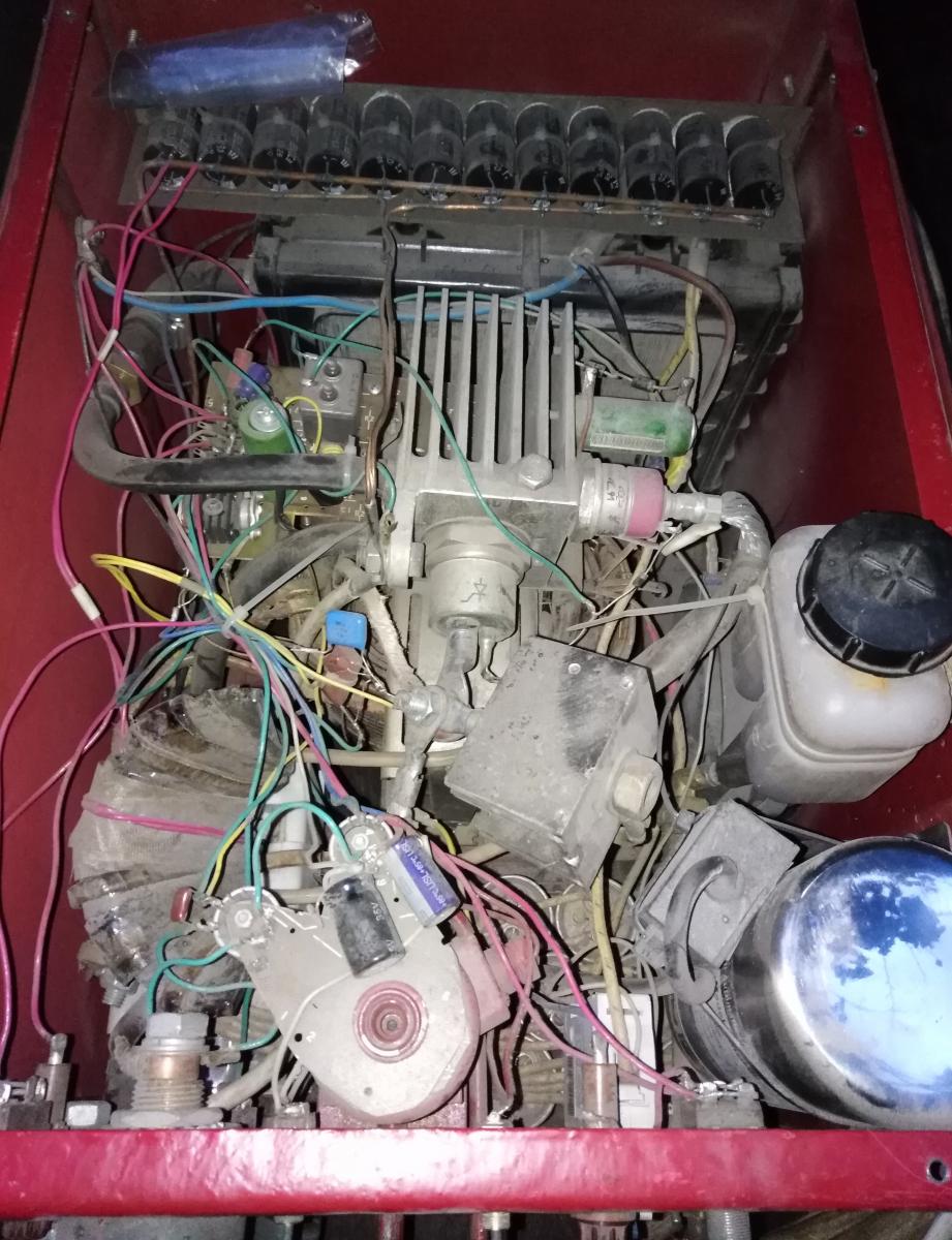 Как можно видеть аппарат 220/380 вольт. трансформатор на 380 вольт ( 2 фазы) и с отводом на 220 вольт. На фото из под планки где конденсаторы заходят два кабеля левый 2 фазы и земля, правый 220 вольт.