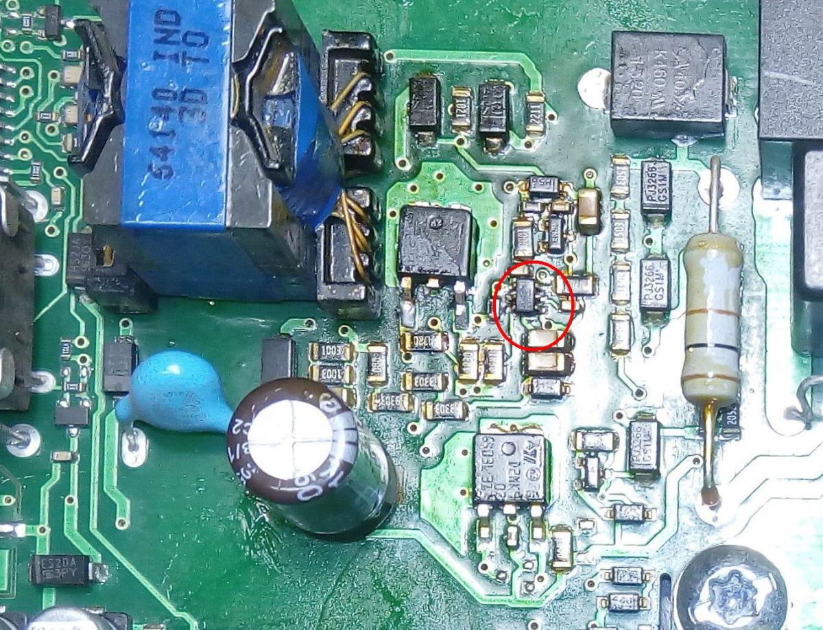Доброго времени, господа форумчане. Прошу помощи в опознании данной микросхемки, или может кто поможет схемкой. Нет запуска дежурки, транзисторы целы. Маркировку микросхемы считать нет возможности, она отсутствует, схемки в нете тоже не нашел. Фото прилагаю. Буду признателен за любую помощь.https://ibb.co/D75nBBJ