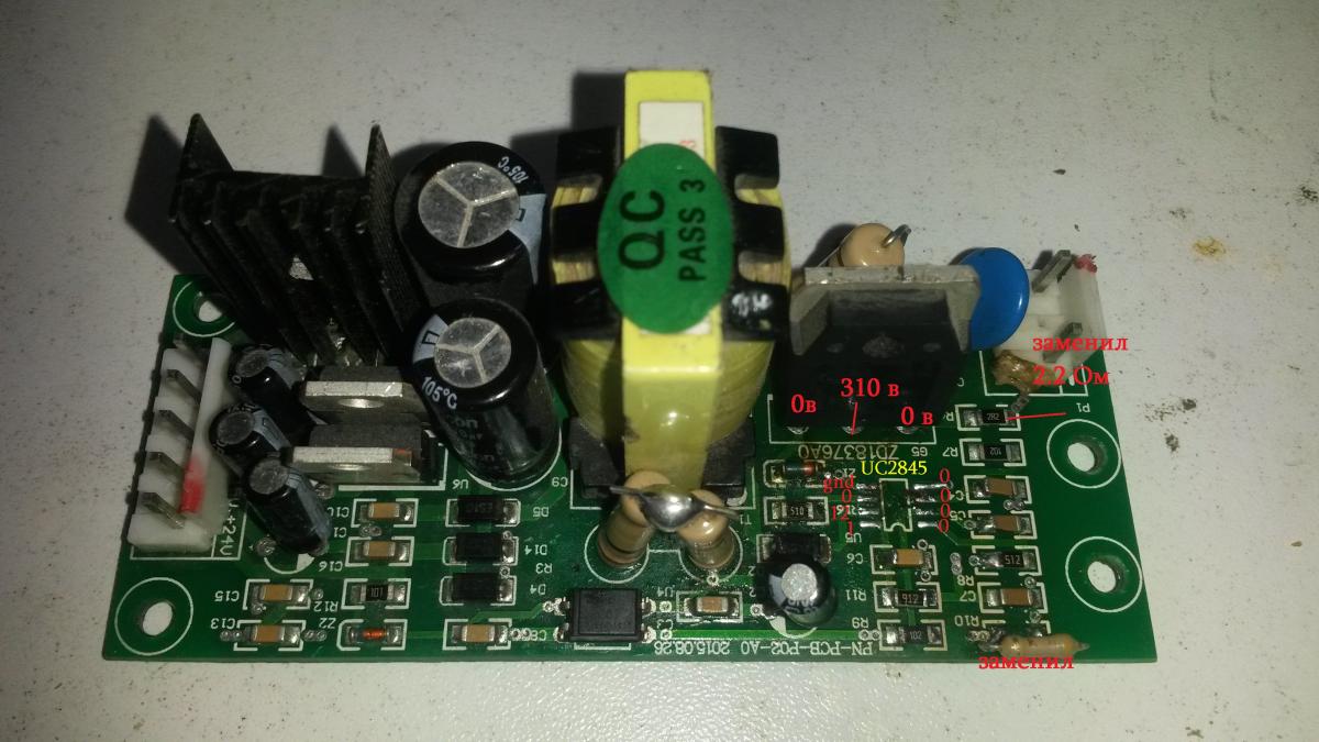 Здравствуйте, блок питания мёртвый и немогу запустить ,полевой транзистор проверил мультиметром не прбит.Я новичёк и если можете подскажите как проверить всю цепь и понять почему не запускается.Ны фотке указал какие сопротивления заменил,были пробиты ,и напряжения с установленным шимом .СпасибоВложение 10651
