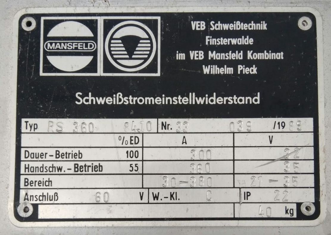 Балластный реостат Kjellberg Finsterwalde RS-360 германия