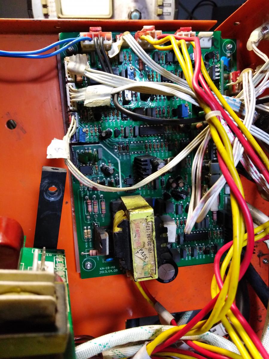 3. На плате управления дежурка выдавала 50 вольт так как были выпаяны резисторы что с выхода идут на стабилитроны и оптопары. В раскачке ТГР два транзистора P и N канальный поменяны местами. Так как разъёмы на плату управления тыкали куда подходит, то спалили вольтметр. На плате управления спалили диод выпрямителя с токового трансформатора. Естественно все подстроечники крутили авось заработает.