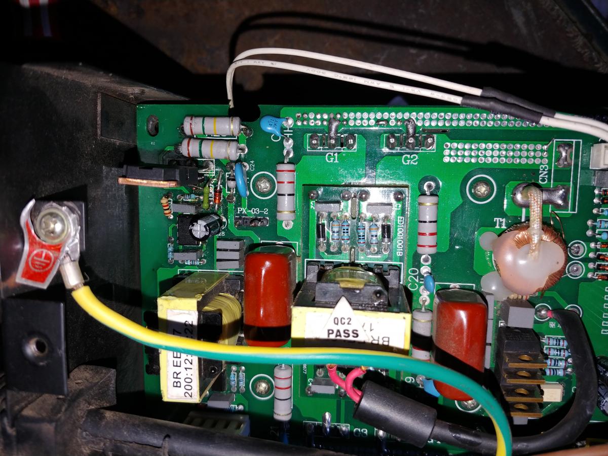 Когда работал сварочным инвертором взорвался конденсатор 47мкФ/50в в области дежурного питания (на рисунке будет видно). Вышедшие из строя элементы были заменены, согласно схемы.