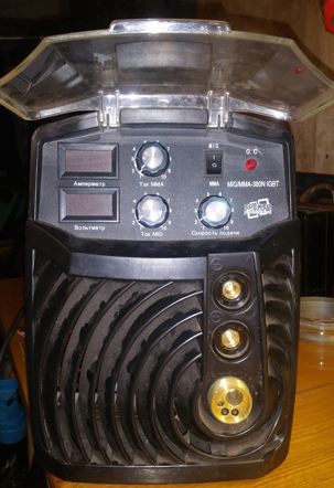Клиент принес этот дивайс и жалуется, что якобы раньше можно было регулировать скорость подачи проволоки ручкой "Скорость подачи" отдельно. А теперь только синхронно егулировкой "Ток MIG"