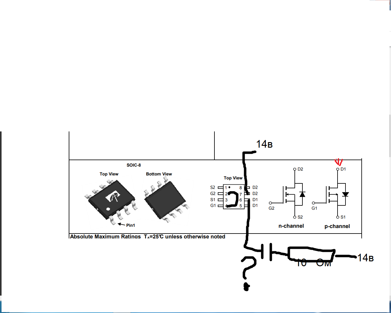 точнее , обвязку АО4606, горит резистор 10 Ом подключенный , через конденсаторВложение 12827Вложение 12828 по 5н, данной микросхемы. Опознать номинал конденсатора