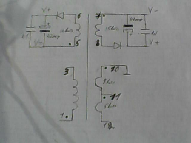 Николаевич ,- Xort01 прав похоже я неправильно посчитал ведь по схеме там 10 нога земля обмотка 8витков по~2в ~16в + 5витков -~10в итого ~26в и с распиновкой ног транса попутал, но уже исправил.транс не заработал светодиоды моргают снял снова ищу ошибку