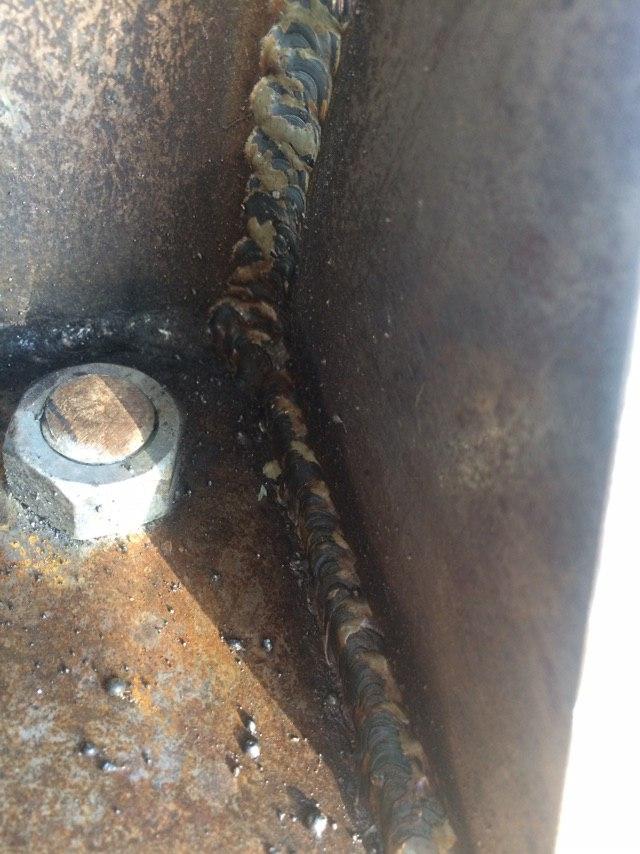 Плохо видно торец детали , но похоже косынки резаны плазморезом . Если так , то зачистка не только кромок , но и торца обязательна . Окалина на срезе будет создавать проблемы