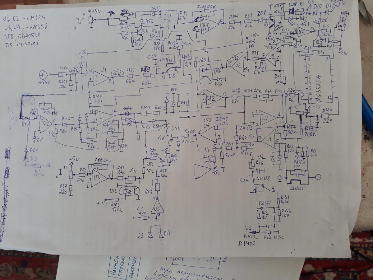 Показания на U1 pin1 и U2 pin14 сняты аналог осцилом , кроме постоянки от 123 и до 172а появилась переменная составляющая , поэтому измерялась полная величина и возможно не соответствует реальному. Надо цифровым проверить! на R61