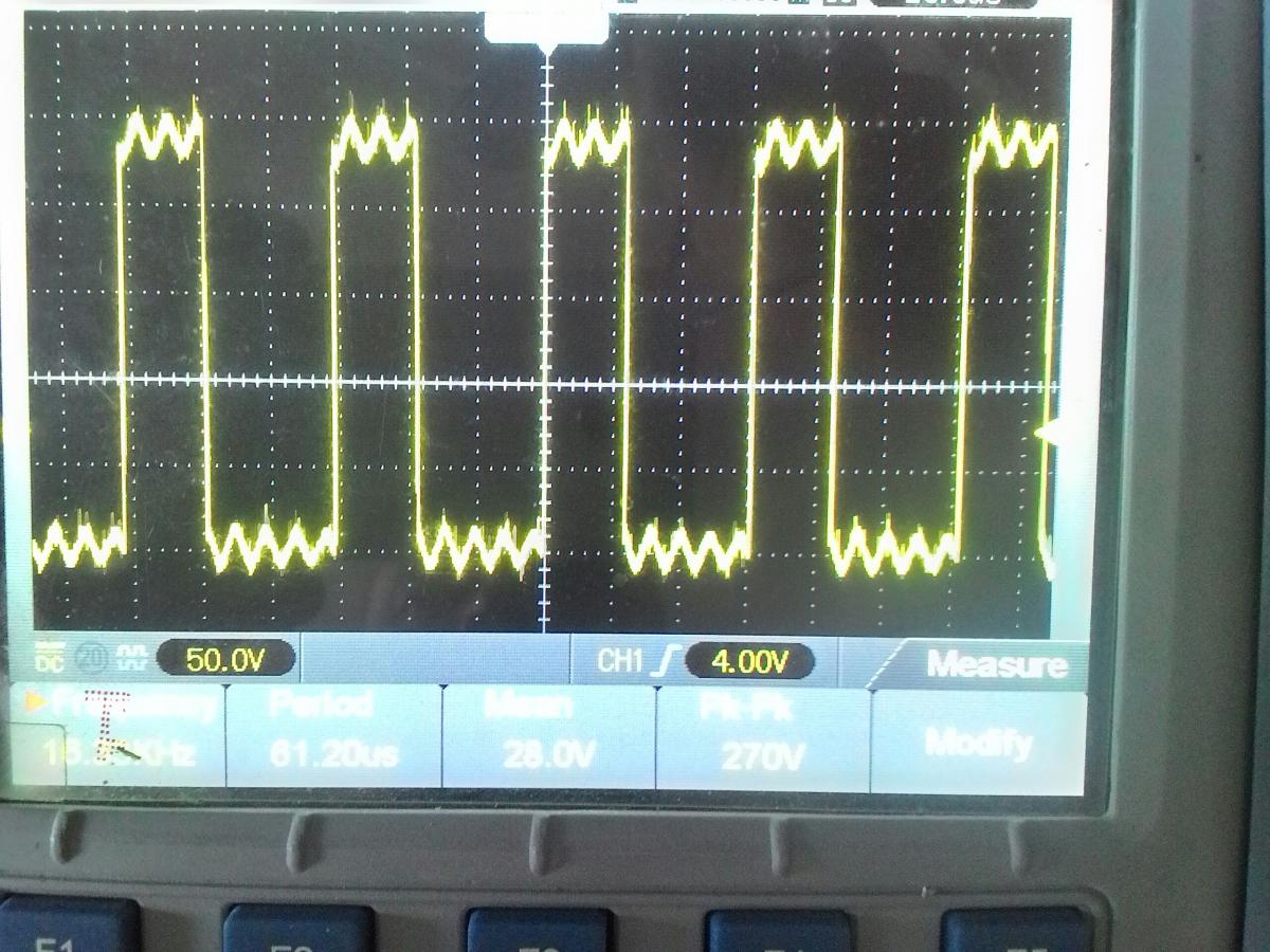 на затворах такой сигнал?или это на эмитер-коллектор?нужен на затворах.По диодам fr207 медленноватые,прилепите те что были назад,если они целые.