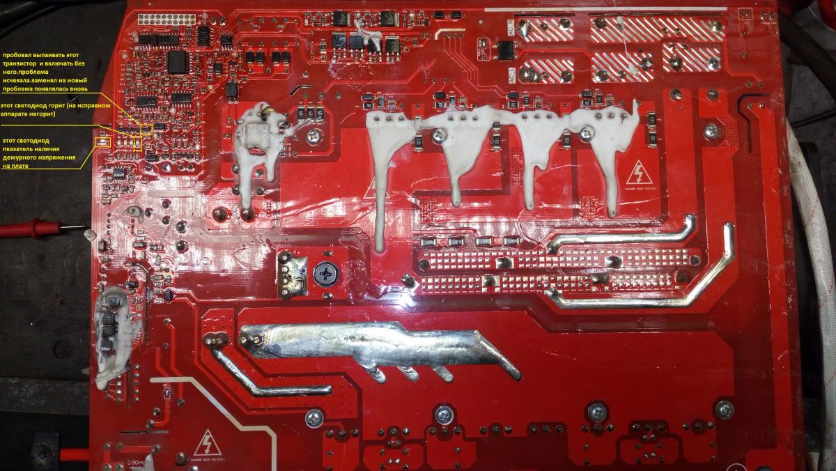 Один отвечает за наличие питание он горит. Рядом стоят четыре в ряд , на исправном они не горят. На проблемном горит первый справа.