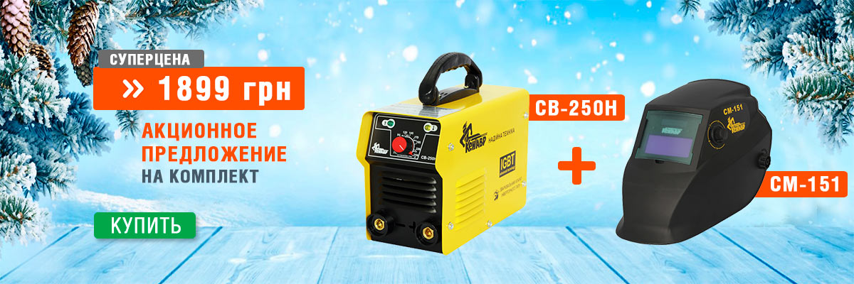Еще одна акция: СКИДКА НА КОМПЛЕКТ! Сварочный инвертор СВ-250Н + маска-хамелеон Кентавр СМ-151