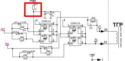Теперь дальше - что будет с этим узлом без управления по затворам - там приходят противофазные импульсы - а без 3846 состояние неизвестно - снимите с этого узла напряжение - резистор в красном квадратике.