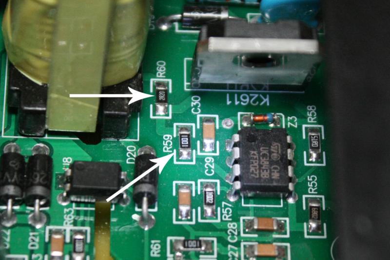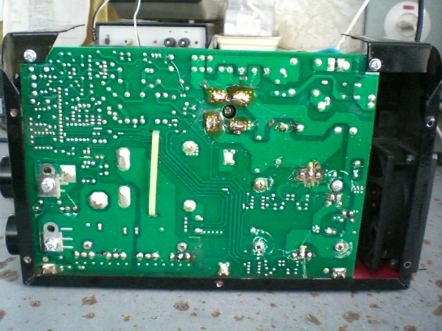 2. Снимаем разъем, который идет с верхней платы на силовые трансформаторы - он слева на 3-м фото за большими красными кондерами. В нем 3 красных и 3 черных провода.