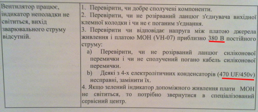 ось фото інструкції по моєму випадку- коли все світиться і працює, але нема на виході струму