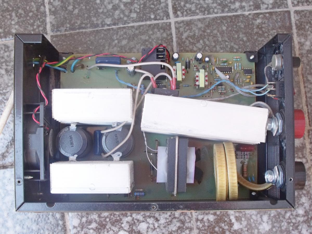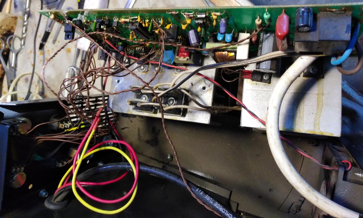аппарат выпуска середины 2012 года, с зеленой платой. Использовался немного, может килограмм 30-50 электродов. Два забора, несколько небольших конструкций, откатные ворота. Вот на окончании ворот и начались проблемы.