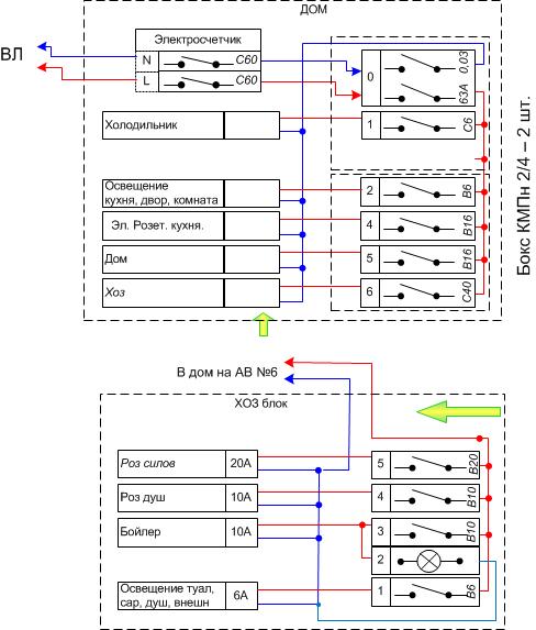 Вот схема электропитания, приходит по воздушке, от столба 25 м алюминий 10 кв. в счетчик с УЗО и АВ, далее в хозблок старый кабель внешне похоже на СИП 3х4 кв алюминий проложен под землей 20 м. в хозблоке свои АВ и разводится на розетки 6 кв. алюминий и освещение. От них и включаю удлинитель для разных работ: сварочник, болгарки, дрели, циркулярка, газонокосилка и проч.
