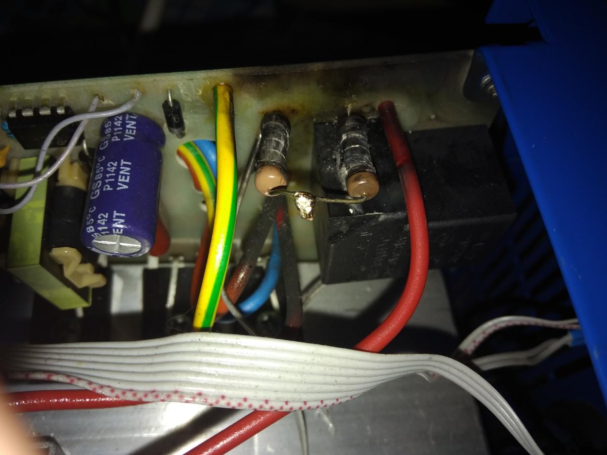 После вскрытия видно, что сгорели два сопротивления над реле, (чёрная коробочка со стороны регулятора)