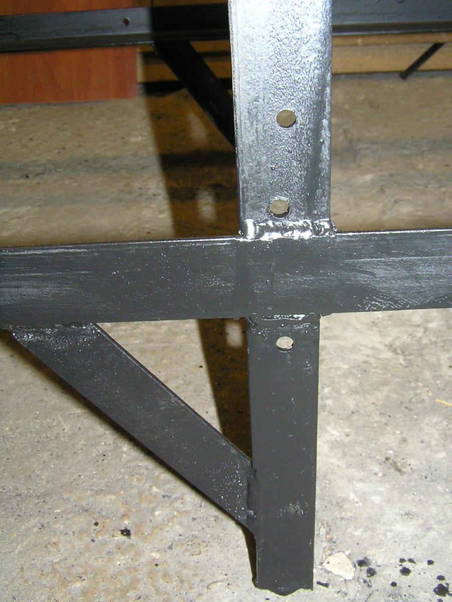 Центральную ногу прваривал по типу таврового соединения для надёжности ещё приварил доплнительно косую деталь.