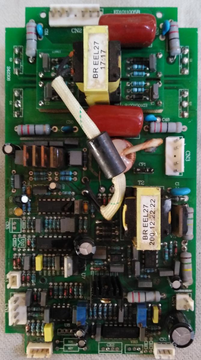 А проверьте конденсаторы С38 И С76. Когда включаем аппарат нам нужна задержка чтобы этот узел не заблокировал ШИМ и эти конденсаторы пока заряжаются не дают это сделать и у нас на выходе появляется напряжение и оно уже поддерживат ШИМ от блокировки - вот почему я говорил закоротить З-К транзистора что бы запустилась ШИМ. На холостых без нагрузки аппарата будет максимальное заполнение - ну и мёртвое время конечно. Вообще детальку негодную нашли - я так думаю что аппарат должен запуститься. Я бы после проверки ESR метром конденсаторов ( очень большая вероятность что там они барахлят ) запаял силовые - только +310 вольт после электролитов подал на выходной каскад через лампу ватт 100-200 - они к стати у вас запаяны только питаете от отдельного источника дежурку. Думаю должно запуститься. Вот сегодня делал аппарат с такой платой управления и специально измерил режимы на микросхемах - он конечно другой по схемотехнике управления, но на 3846 режимы в принципе одинаковые где то.