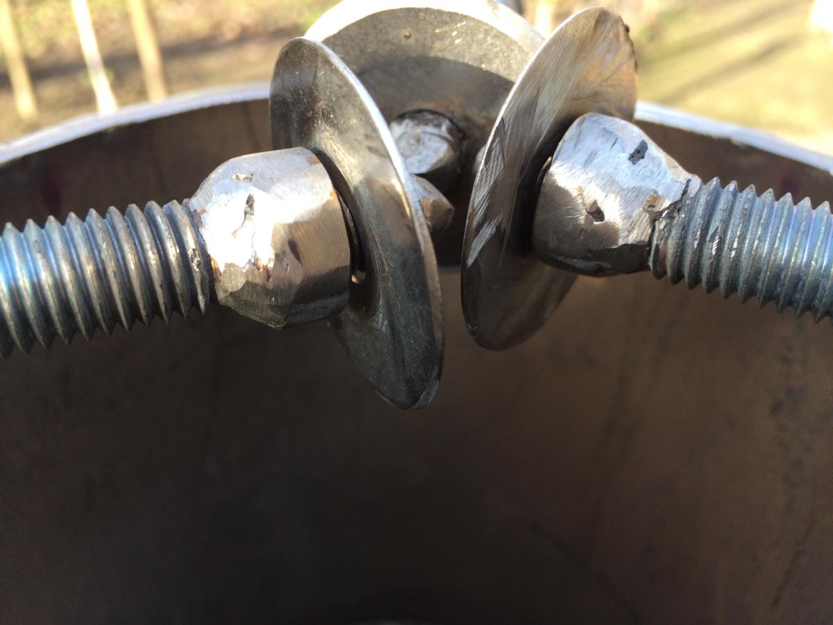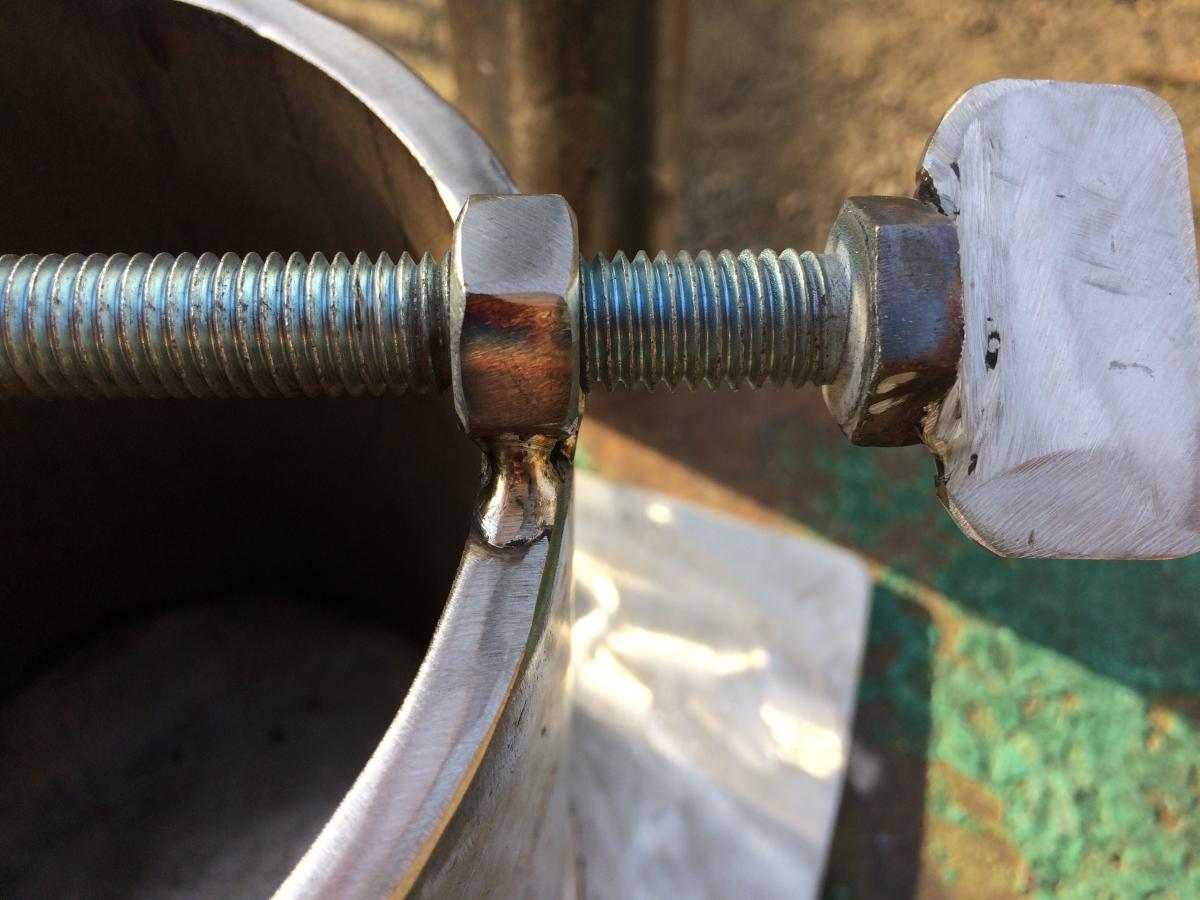 На фото - гайки и болты М12 из черной малоуглеродистой стали приварены к нержавейке.