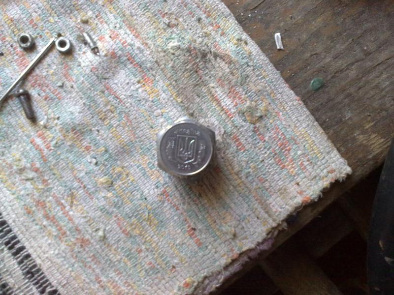 Еще сделал заглушку на разъем к ПУ,чтобы грязь не попадала(нижняя гайка из БТП-102 + 5 копійок припаял ) и заглушка готова.Ремень тоже прикрепил на заклепки,взял из старой китайской сумки,т.к. у производителя ремень 50грн+20 доставка,вот и выходим из того что имееем.