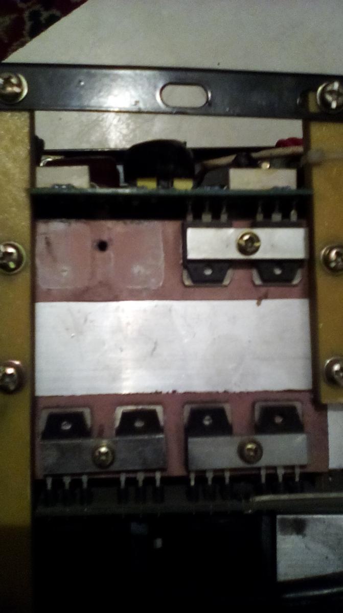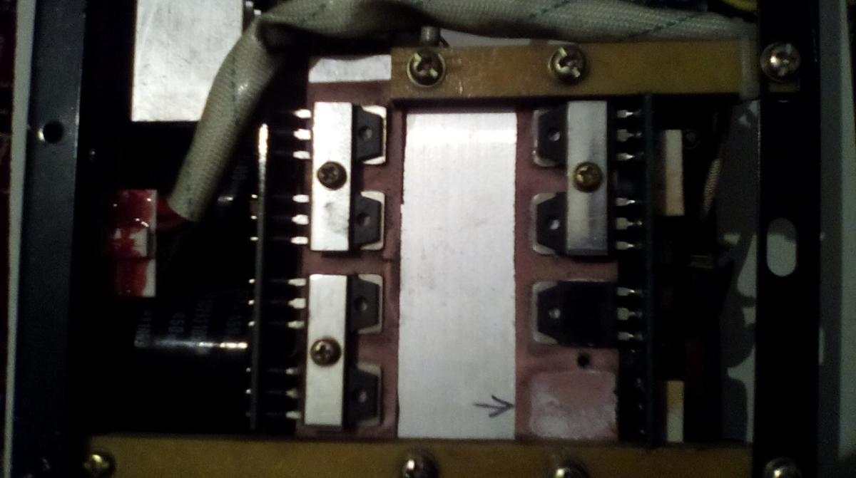 http://weld.in.ua/forum/attachment.p...2&d=1480182123 в розрыв плюсового провода(три красных провода,с нижней платы на верхнюю идут,все три и есть плюс,они запаралелены),у вас осталось пять транзисторов из 8(то есть 4 пары),правильно?выпаяйте один из этих транзисторов что на фото,и впаяйте на место сгоревшего http://weld.in.ua/forum/attachment.p...1&d=1480182023 ,то есть левее.