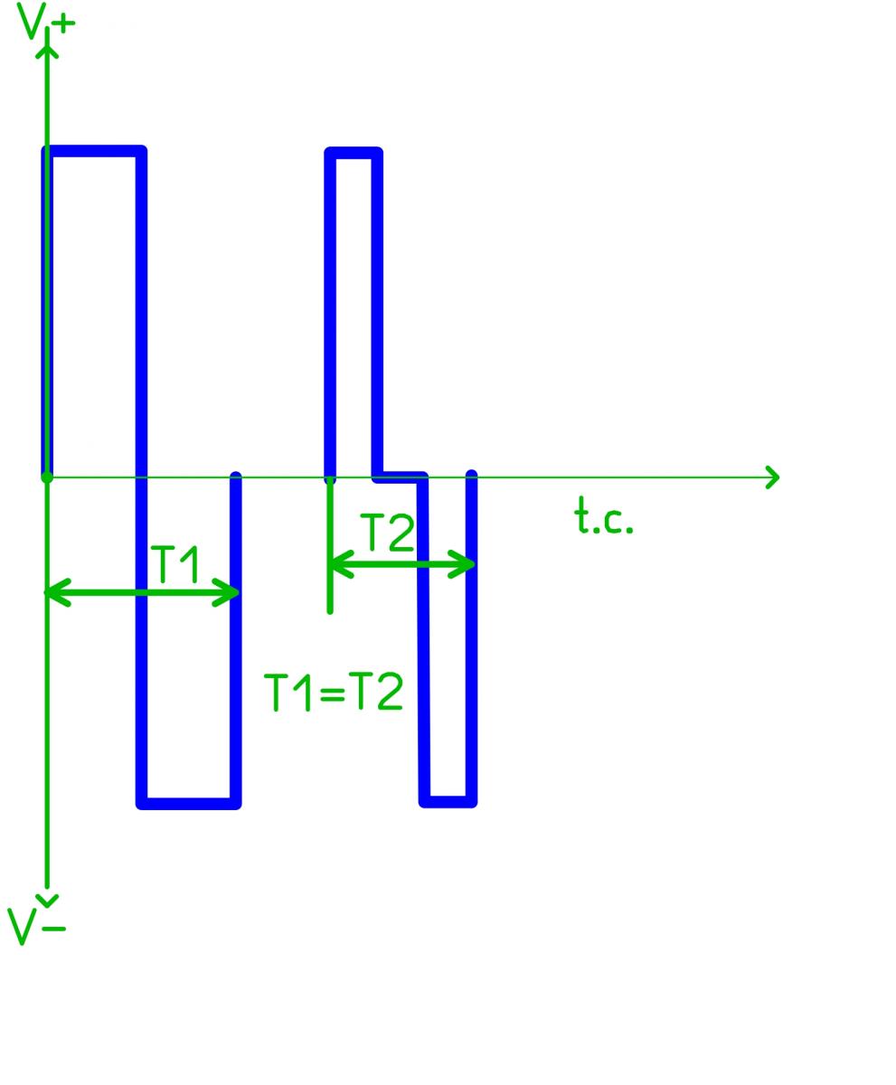 В первом случае частота переменка 1 Гц . И на втором графике частота 0.3 Гц для каждого направления постоянку если Т2 разбит на равные отрезки времени . И это очень важно . Именно пауза ( цикл сварочного тока он начала до кончала ) характеризует настраиваемые режимы и импульсы той или иной полярности