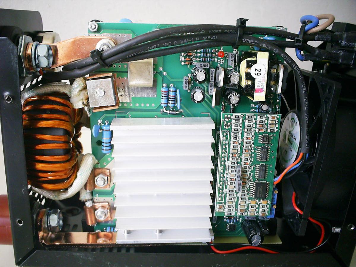 Правда есть ложка дегдя - это наличие одного термостата на радиаторе ключей. Не мешало-бы поставить и на радиатор диодов. Стоит мелочь, но было-бы конечно надежнее. Обмотки трансформатора хорошо открыты и продуваются качественно.