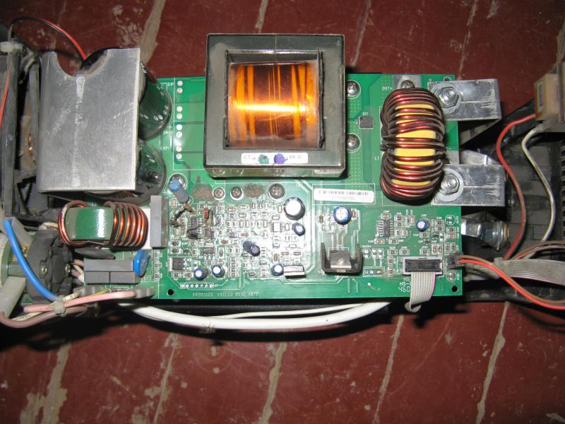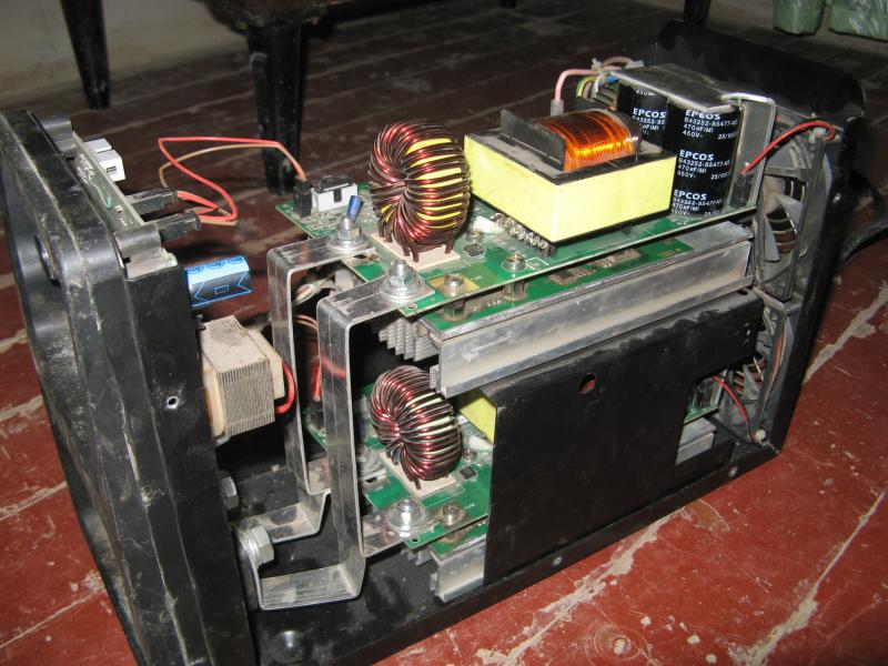 Вовремя работы на низком напряжении сначала был как бы писк,а потом сильный хлопок и перестал работать вентилятор на нижнем блоке.Потом в течении 10 минут было ещё 2 хлопка.Вскрытие показало: на плате,которая прикручена к радиатору 3 детали выстрели. Аппарат работает,но боюсь пользоваться,как бы не сгорел и верхний блок,нагрузка на него как я понимаю теперь больше.Я сварщик,ремонтом не занимаюсь.Есть знакомый который может отремонтировать,только говорит нужна схема.Если можете,помогите.В заранее благодарен.